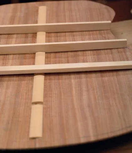 Small soundboard braces clamped on