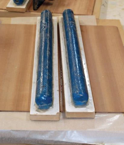 1: Test fit for binding 2: Cabinet scraper scraping down bindings