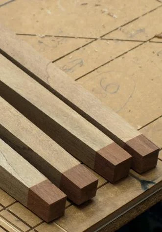 With the components finished, sanded and scraped smooth I applied a Tung oil finish to really show off the beautiful timbers.