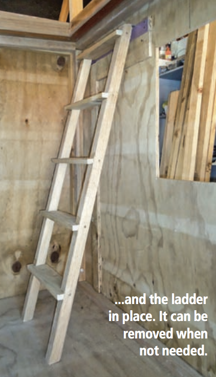 After several versions we came up with a design that suited the location and would provide plenty of potential for activity as my grandchildren grow. I planned to build the cubby in Hamilton and transport it to Christchurch in my motorhome. That meant the cubby had to be demountable and the wall panels and timber lengths had to be able to t through the side door of the motor- home and into the luton space above the cab. I judged that panels up to 1.5 metres square and timber lengths about 3 metres would fit.