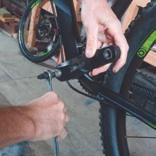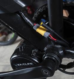 Getting the motor fitted correctly is the most important part of the conversion process. Make sure the motor slides through the bottom bracket shell freely and that all parts are clean and dry. Bikes that have the gear cables running under the bottom bracket will have a cable guide that can be too tall and stop the motor from sliding in, so you may have to modify the guide. You shouldn't have to force the motor into place. The right-hand motor casing needs to clear the chainstay of the frame. Spacers are available to move the motor over so there is some clearance.