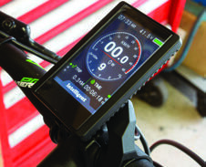 Make sure the battery is turned on. There are a few different speedo options available for these kits and this one comes with a nice center-mounted colour screen that has lots of functions, and the pedal assist control mounted on the side for easy access.