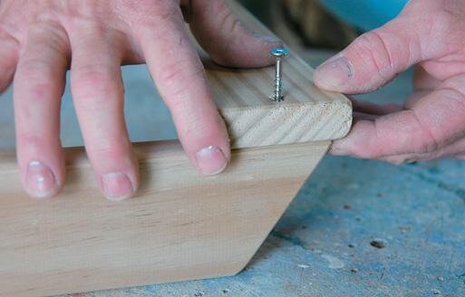 Fit the middle (longest) back slat in place flush with the bottom, dead centre, and glue and screw it.