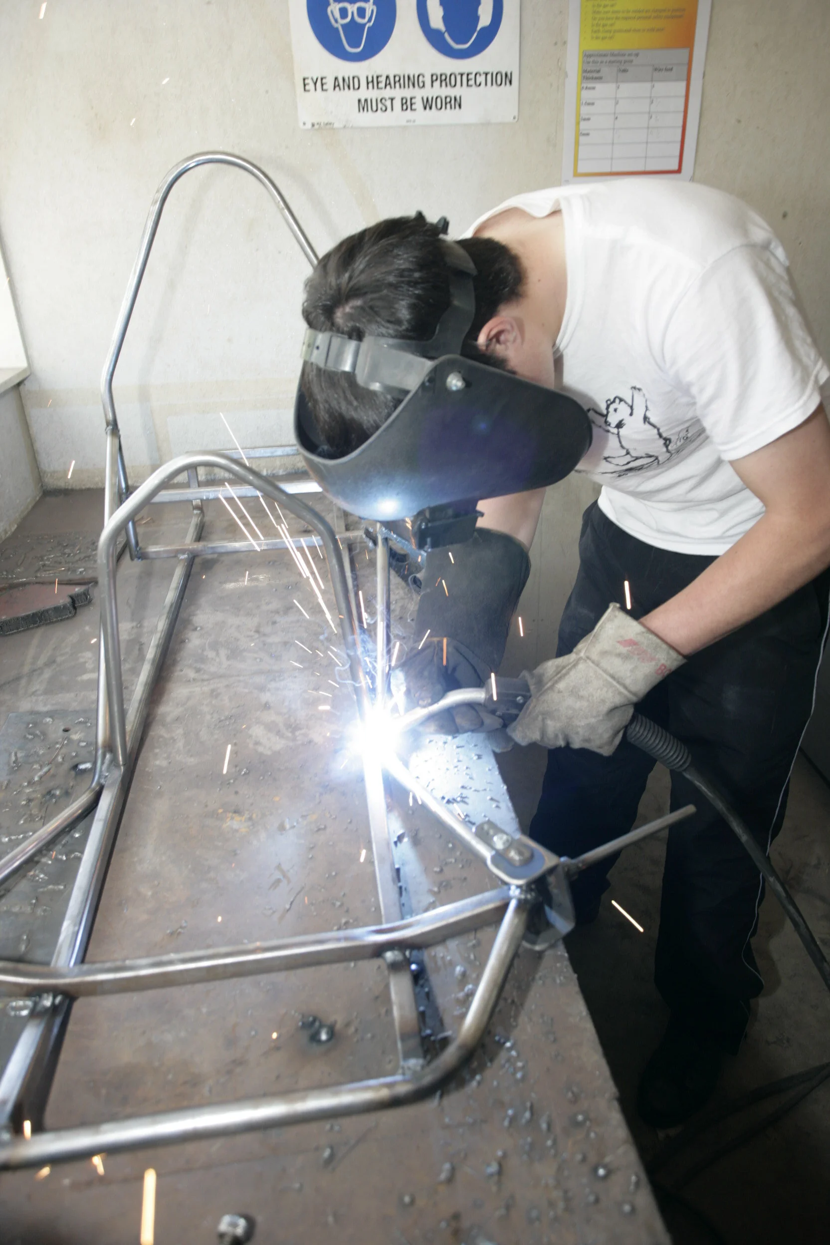 A few spare tyres, a puncture-repair kit and a couple of spark plugs would have also helped. The tarmac track was hard on the tyres, so maybe a grass track next time? The chassis holds all components in place relative to each other and gives a comfortable place for the driver. It should be simple to construct and be fairly rigid. The design is constructed from square and round 20mm x 1.6 mm ERW (electric resistance-welded steel) or “furniture” tube.