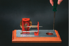 For the hole for the meths burner in the aluminium plate and the timber base, I used a 38 mm hole saw for drilling, then a chisel and a hand router to bottom the hole to the correct depth. To add a professional finish to the edges of the base, I routed them with my favourite cutter. I drilled holes for the screw heads in the aluminium plate a little over-size, then for a very nice finish, I varnished the base with four light coats of an acrylic non-yellowing spray, sanding between each coat.