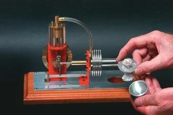 It was invented by a Scotsman named Robert Stirling back in 1816 as an alternative to the steam engine. The Stirling engine is safe, unlike steam engines, runs on low pressures and can be made quite efficient (up to 40 percent). Any source of heat will make it run—I’ve even seen one running on dry ice.