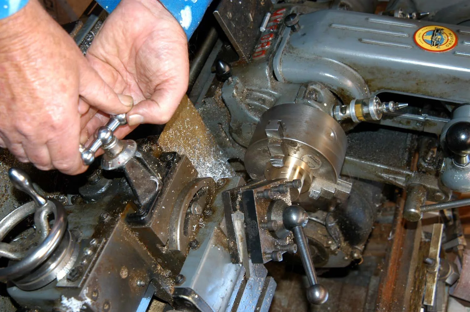 Fit the body into the chuck jaws using the 35mm section for gripping. Face off the large diameter to create an 8mm deep base for the body (first checking the total depth of the body to ensure it is within specifications shown on the drawing, 26mm deep in total). Turn the recess out to a diameter of 35mm at a depth of 2mm and remove the body from the lathe.